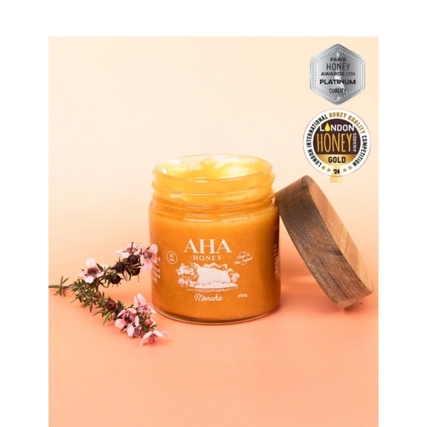 Proudly crafted from native Manuka forests, AHA Honey has also earned International Honey Awards in both Paris and London 2024, a testament to the purity, flavour, and quality of our honey.